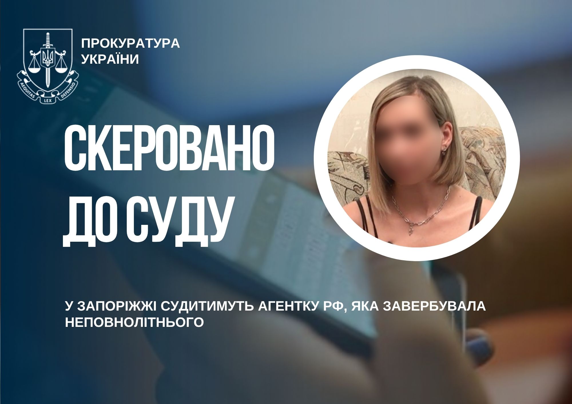 У Запоріжжі судитимуть агентку рф, яка завербувала неповнолітнього